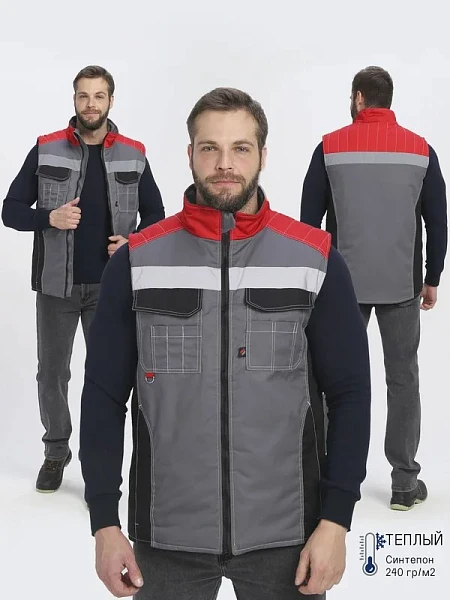 Жилет утепленный Вектрон СОП (тк.Смесовая,240), серый/черный/красный