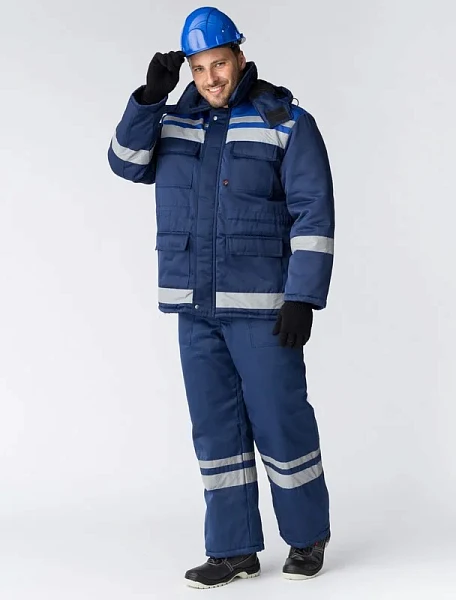 Костюм зимний Горизонт-Люкс (Смесовая, 210) брюки, темно-синий/васильковый