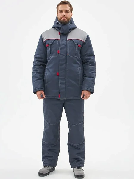 Костюм зимний Флофт-2 Премиум У. (тк.Смесовая,240) п/к, т.серый/св.серый/красный