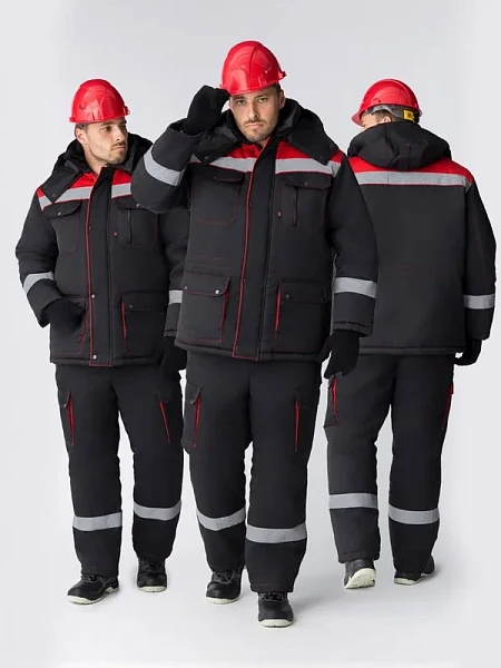 КУРТКА: Прямой силуэт с двухзамковой молнией, ветрозащитной планкой на кнопках и утепленной притачной подкладкой Кокетки из контрастной ткани со светоотражающими полосами (СОП 50 мм) на полочках и спинке Многофункциональная система карманов: два нагрудных с клапанами, карман с двумя входами на молни