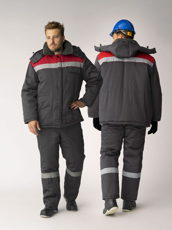 Костюм зимний Труженик-Ультра (тк.Смесовая,210) брюки, т.серый/красный