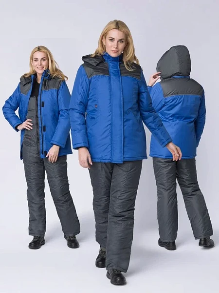 Куртка зимняя женская Сакрин (Дюспо), васильковый/темно-серый