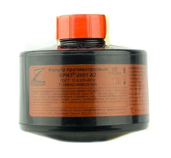Фильтр противогазовый Бриз-2001 A2 применяется для очистки вдыхаемого загрязненного воздуха от: газов и паров органических веществ с температурой кипения выше 65°С, таких как, бензол, ксилол, толуол, бензин, керосин, галоидорганические соединения, нитросоединения бензола и его гомологов, эфиры, спир