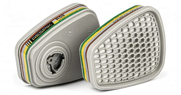 Противогазовый фильтр RESPIK® R59 предназначен для защиты органов дыхания от органических газов и паров с температурой кипения выше 65 °С, неорганических газов и паров, кислых газов, аммиака и его производных, класс защиты АВЕК1 Покраска распылением, растворители (толуол, ксилол), смолы, лакокраски,
