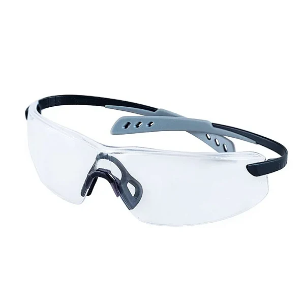 "Суперлегкие открытые очки с ультрасовременным дизайном и увеличенным обзором за счет отсутствия боковой оправы линз. Изогнутая форма линз обеспечивает дополнительную боковую защиту от летящих частиц с низким уровнем кинетической энергии и УФ излучения. Состав: дужки – полиамид, линзы – поликарбон