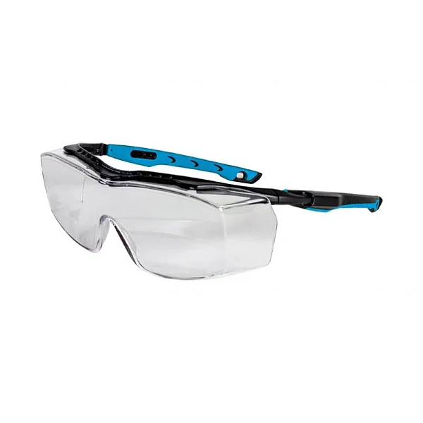 Очки с панорамной высокопрочной линзой из поликарбоната защищают (спереди и сбоку) от ударных воздействий высокоскоростных частиц с низкой энергией удара (45 м/с) и УФ-излучения. Прозрачная поликарбонатная (PC) сферическая линза обеспечивают максимальную видимость и наилучшую цветопередачу. Специаль