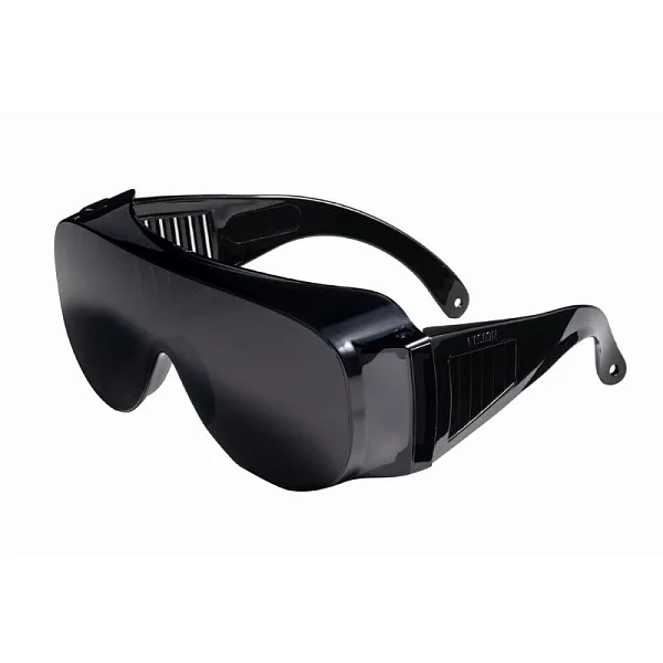 ОЧКИ: универсальные очки с панорамным защитным стеклом-светофильтром увеличенного размера из поликарбоната тёмно-серого цвета с водостойким двусторонним твердым и незапотевающим покрытием, не теряющим свои свойства при продолжительном использовании защитное стекло обеспечивает защиту от высокоскорос