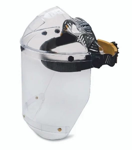 Увеличенный экран из твердого оптически прозрачного материала ударопрочный и термостойкий поликарбонат – защита от высокоскоростных летящих частиц с высокоэнергетическим ударом, имеет скошенную книзу форму для увеличения эргономики изделия, исключает неудобства при повороте и наклоне головы; экра