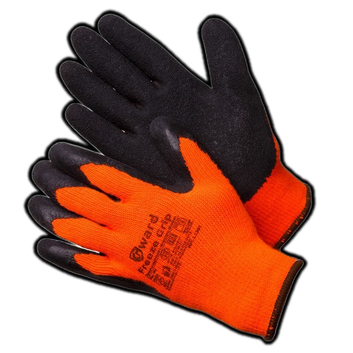 Зимние акриловые "брашированные" перчатки оранжевого цвета, покрытые текстурированным латексом.