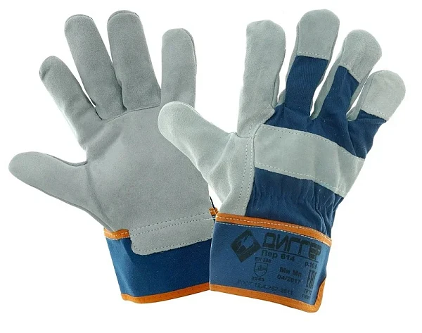 Перчатки ДИГГЕР спилковые комбинированные предназначены для защиты рук от механического воздействия (истирание, прокол, порез). Перчатки изготовлены из кожевенного спилка крупного рогатого скота (КРС) и плотной хлопковой ткани. Спилок коровий, мягкий, сорта АВ (1,3 мм +/– 0,2 мм). Хлопчатобумажная
