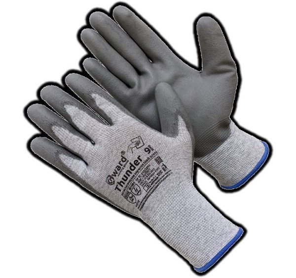 Антистатические нейлоновые перчатки серого цвета с вложением карбоновых нитей и полиуретановым покрытием серого цвета.