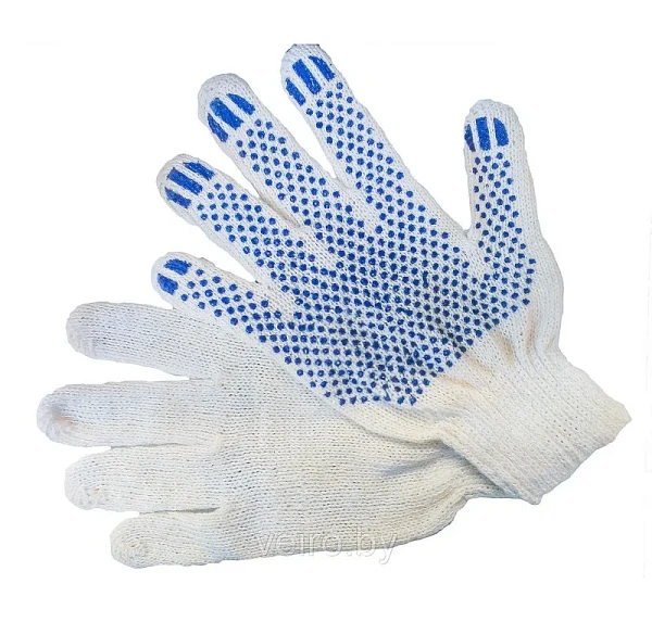 Перчатки х/б 10кл. ЛЮКС с ПВХ ТОЧКА 43-46 гр. 125 текс, белые (10пар)
