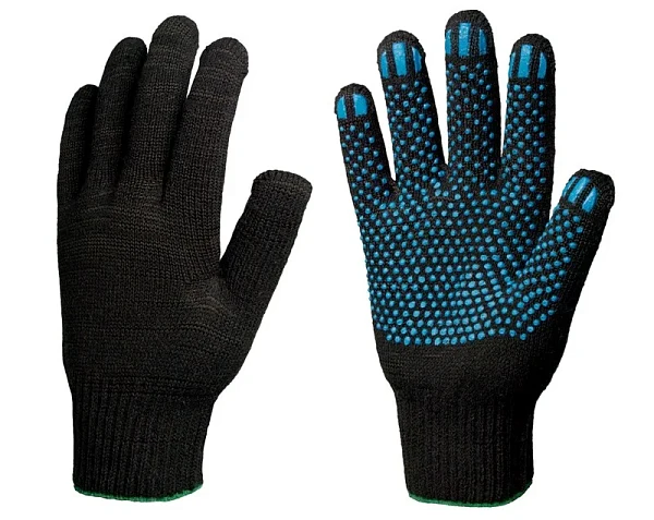 Перчатки х/б 10кл. ЛЮКС с ПВХ ТОЧКА 51-53гр. 150текс, черные (10 пар)
