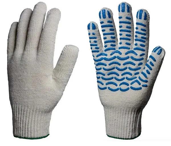 Перчатки х/б 10кл. ЛЮКС с ПВХ ВОЛНА 51-53гр. 150текс, белые (10 пар)