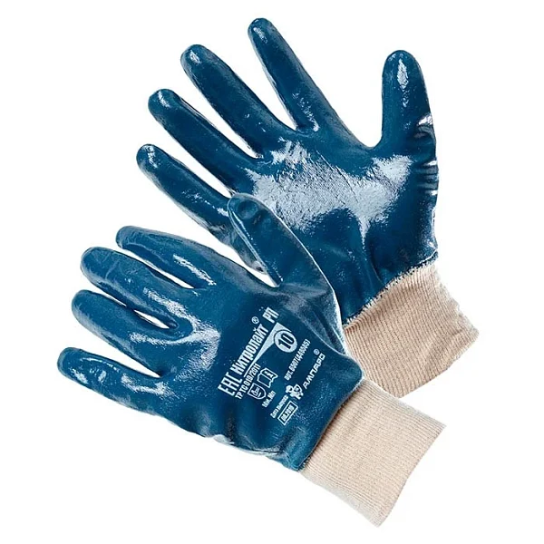 Защитные свойства: Ми, Мп Эксплуатационные уровни: (EN 388) 4121 Высокопрочные трикотажные перчатки с двухсторонним резиновым покрытием для защиты от механических воздействий. Состав: основа - хлопок, интерлок; покрытие – нитрил. Тим манжеты – трикотажная резинка. Основа перчатки состоит из высок