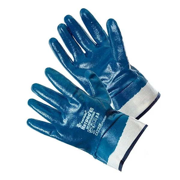 Защитные свойства: Мп, Ми, Нс, Нм, Вн, К80, Щ50 Эксплуатационные уровни: (EN 388) 4232 Перчатки из хлопчатобумажного трехниточного футерного трикотажного полотна, с двойным полным покрытием из нитрильного латекса, с короткой манжетой-крагой. Состав: материал основы – «джерси»; покрытие - нитрильны